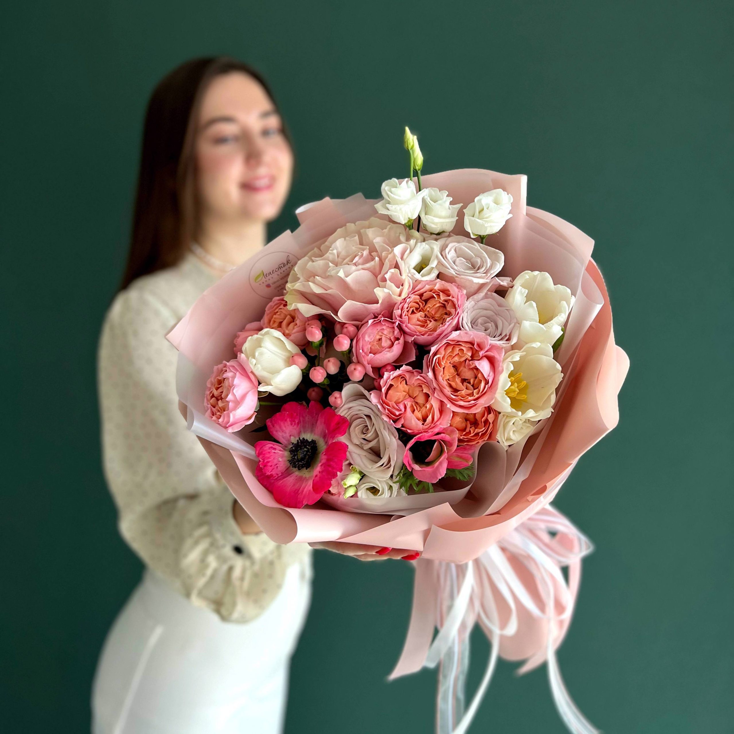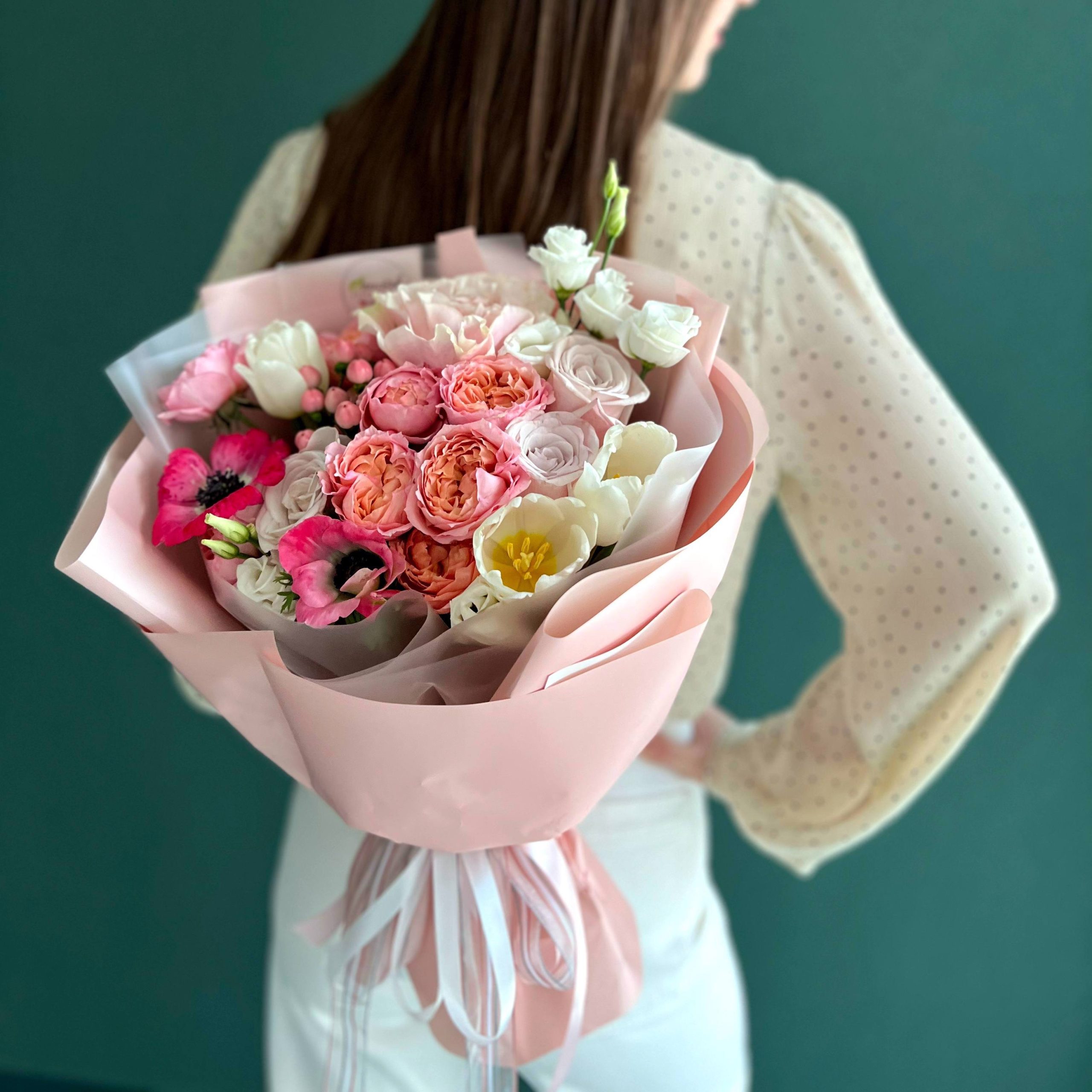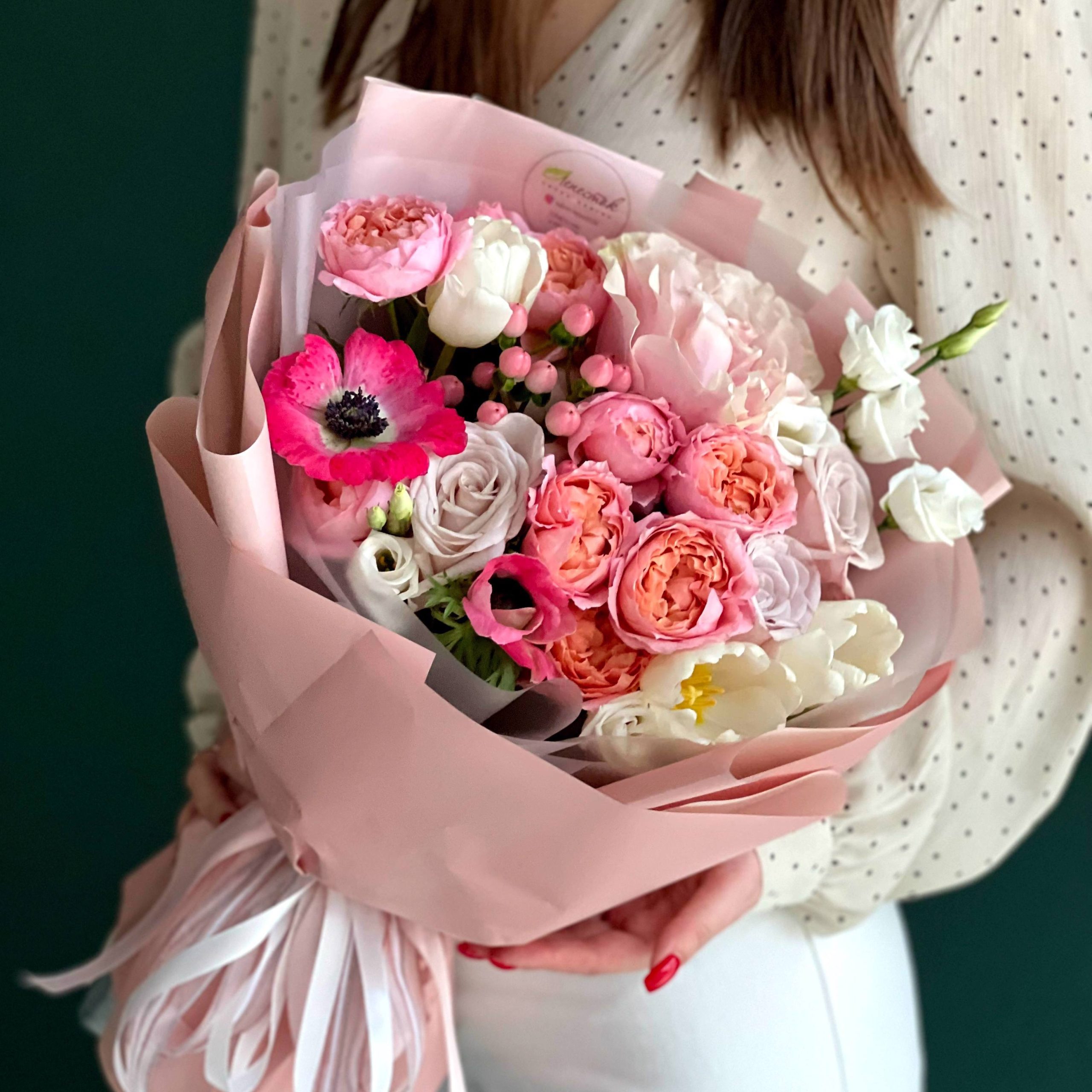 Букет из анемонов, тюльпанов и пионовидных роз в Яровом