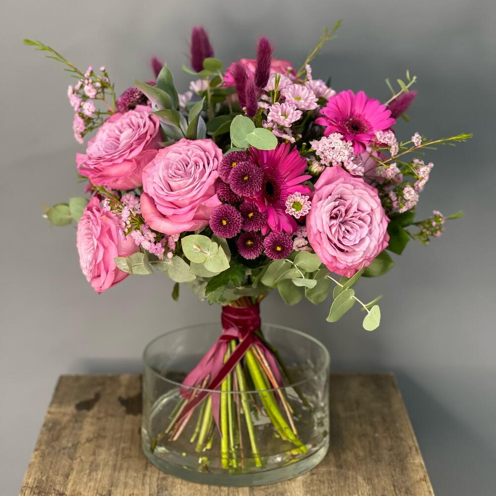 Авторский букет с розами, герберой, маттиолой и кустовой хризантемой так и называется “Малиновый”. Отлично подойдет в качестве подарка или дополнения к подарку на любое торжество, будь то день рождения, юбилей или просто знак внимания.* По вашей просьбе, мы подпишем открытку с наилучшими пожеланиями. * Букет отправляется к Вам на аквабоксе с водой и в подарочном крафт пакете.Рекомендации по уходу:Перед тем, как поставить букет в воду, мы рекомендуем снять упаковку, освежить срез стеблей. Затем налить в вазу чистую прохладную воду, добавить пакетик подкормки для срезанных цветов и поставить букет.Выбирая место для вазы с цветами, рекомендуем избегать прямых солнечных лучей, отопительных приборов и сквозняков.Замена воды и подрезка стеблей не реже 1 раза в 2-3 дня.Замечательным дополнением к букету может стать мягкая игрушка, набор свечей или ваза.Желаем вам приятных покупок!